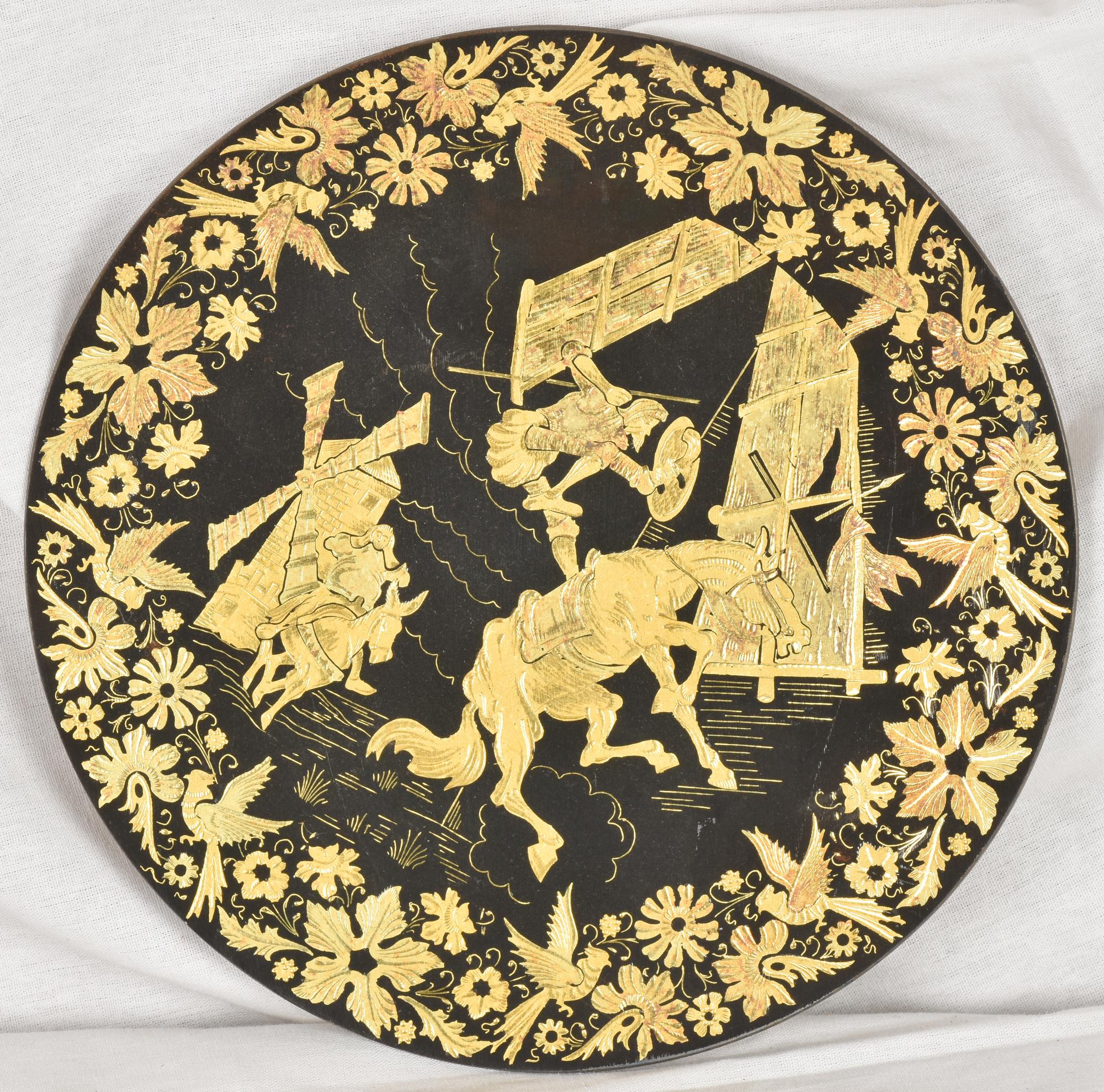 PIATTO CENTROTAVOLA in metallo con decorazioni in oro zecchino raffigurante...