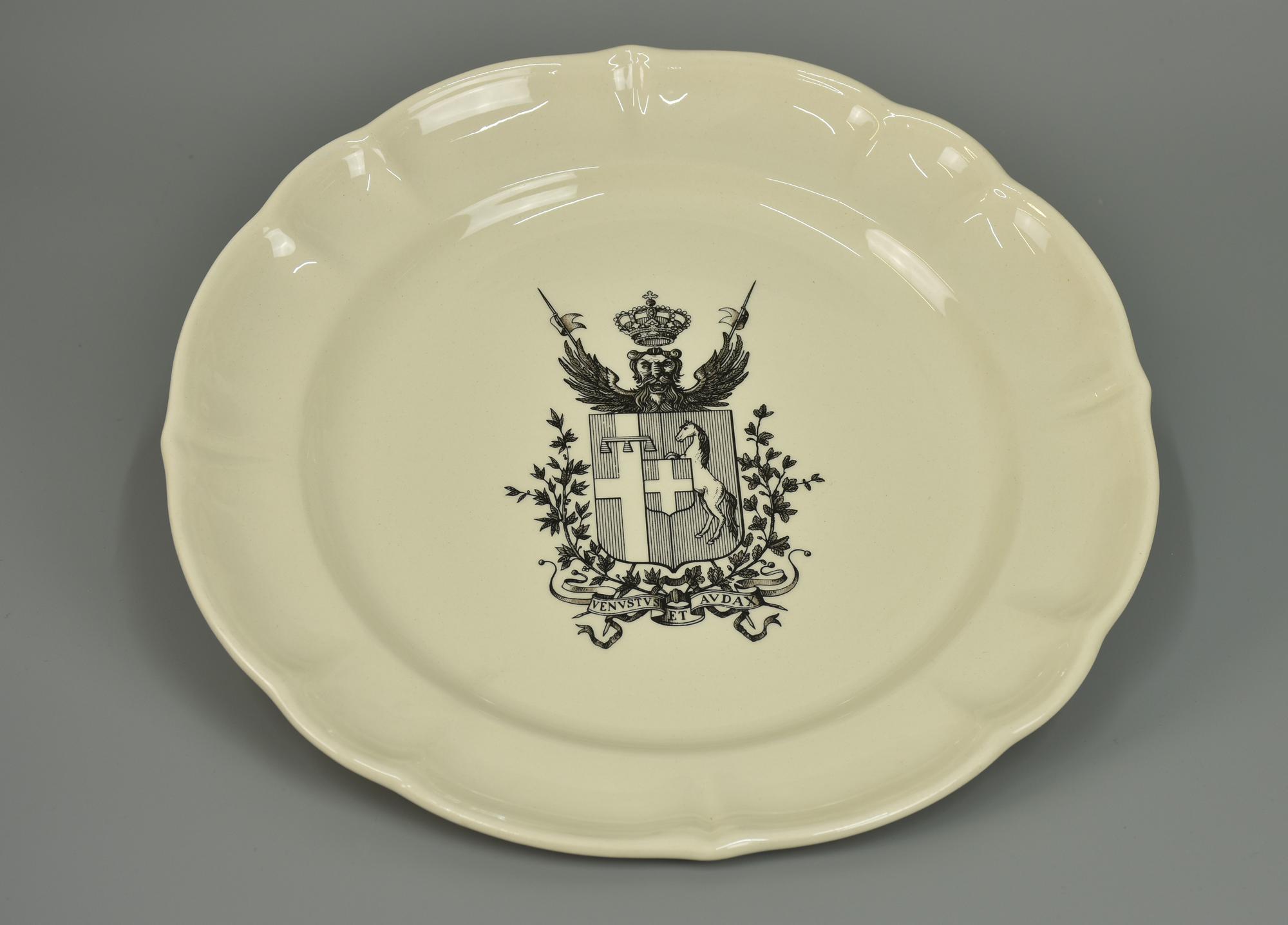 PIATTO IN PORCELLANA di Laveno con stemma cavalleria ed. 'Il Cartiglio...