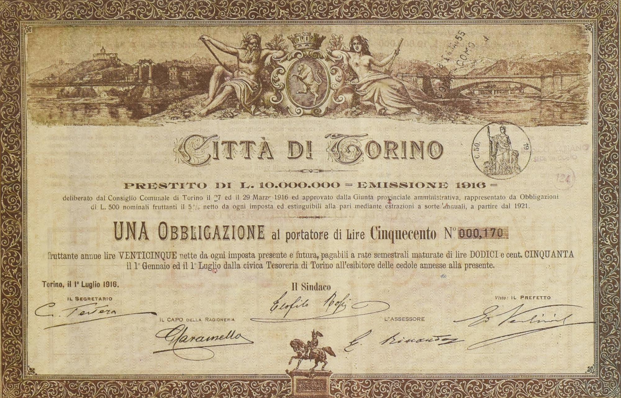 OBBLIGAZIONE obbligazione della citta' di Torino protocollata il 1 luglio...