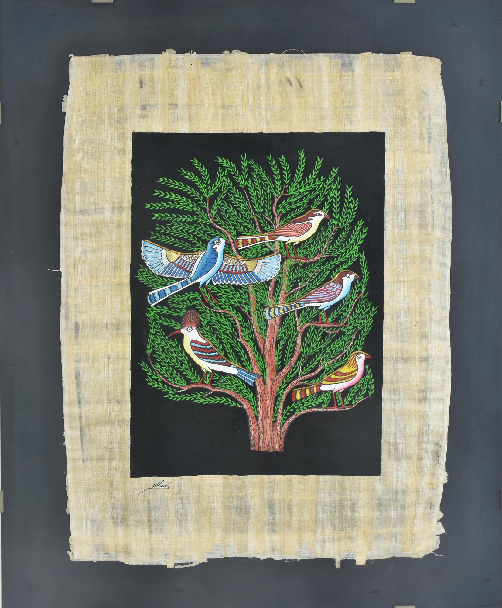 Anonimo STAMPA EGIZIANA SU PAPIRO raffigurante albero con pennuti cm 48x36