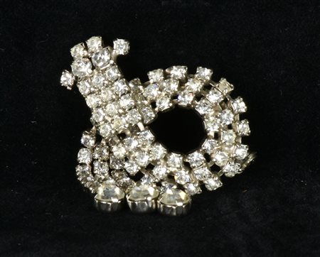 spilla a forma di fiocco con tre fili di pendenti in strasse tipo Swarowsky