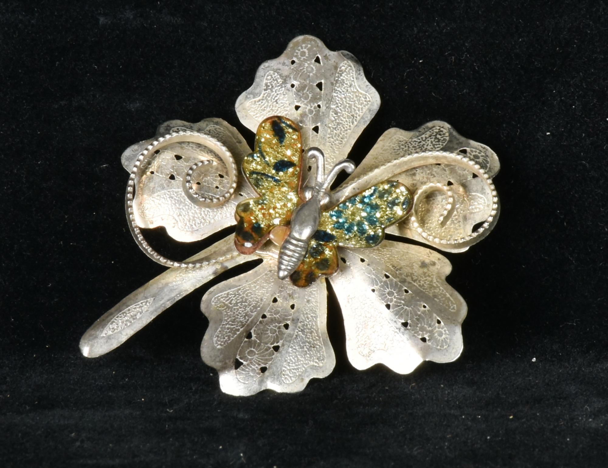 Lot 782 | SPILLA in metallo argentato e smalto Italia, 1970 cm 6x5