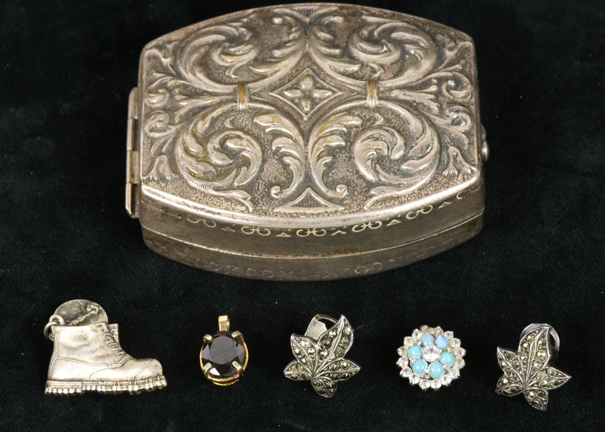 Lot 816 | SCATOLA CON CHARMS scatola in metallo sbalzato contenente 5 charms di varie...