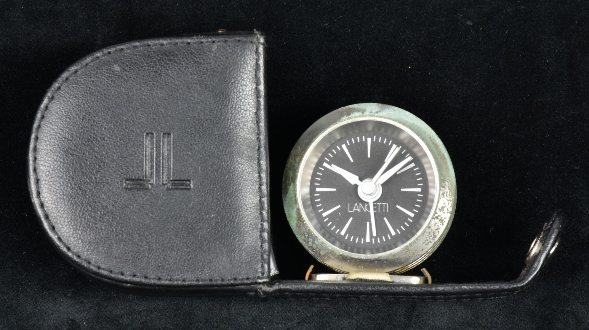 OROLOGIO DA VIAGGIO Lancetti, entro custiodia in pelle originale Italia, anni...