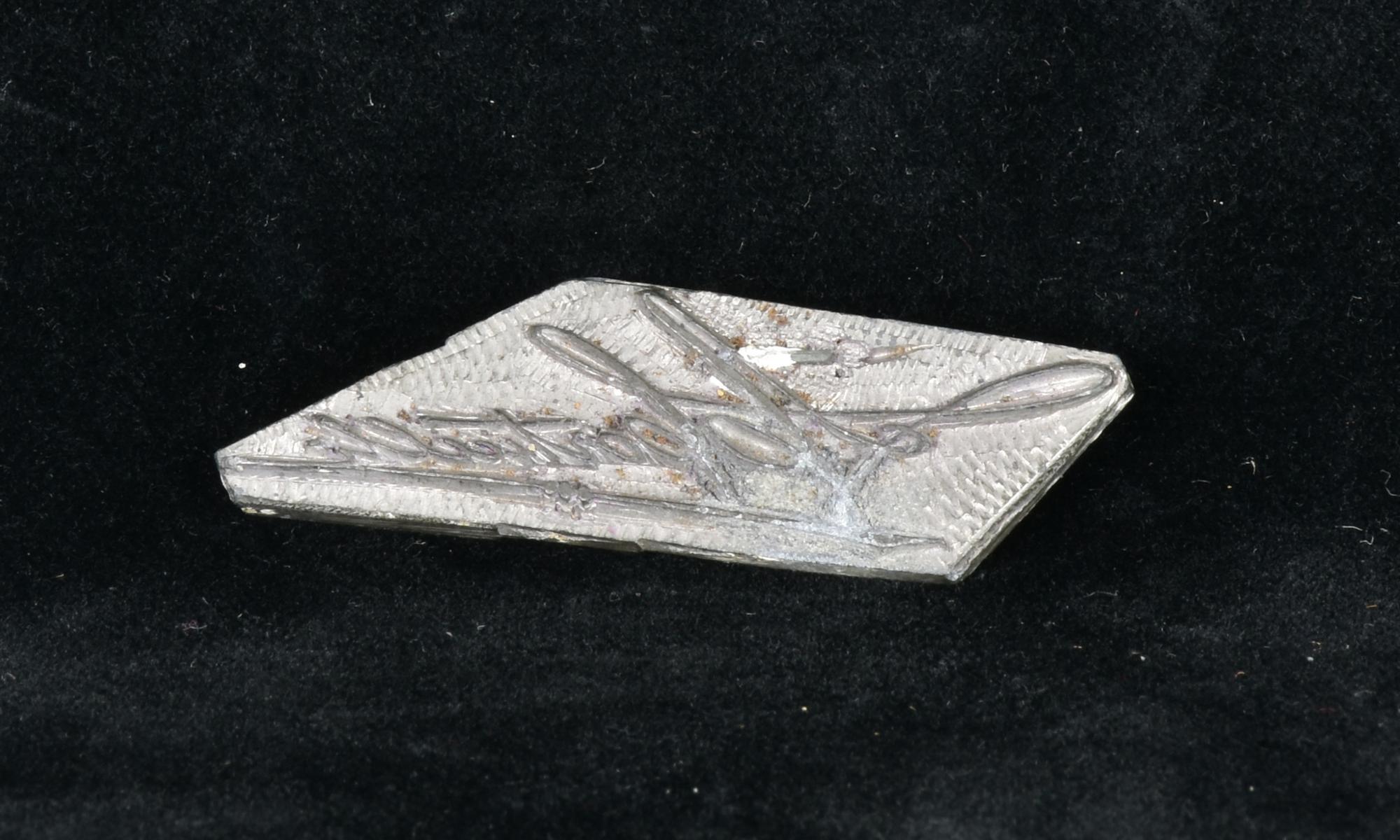 TIMBRO IN STAGNO raffigurante firma illeggibile Italia, anni '50 cm 5,5x1,5