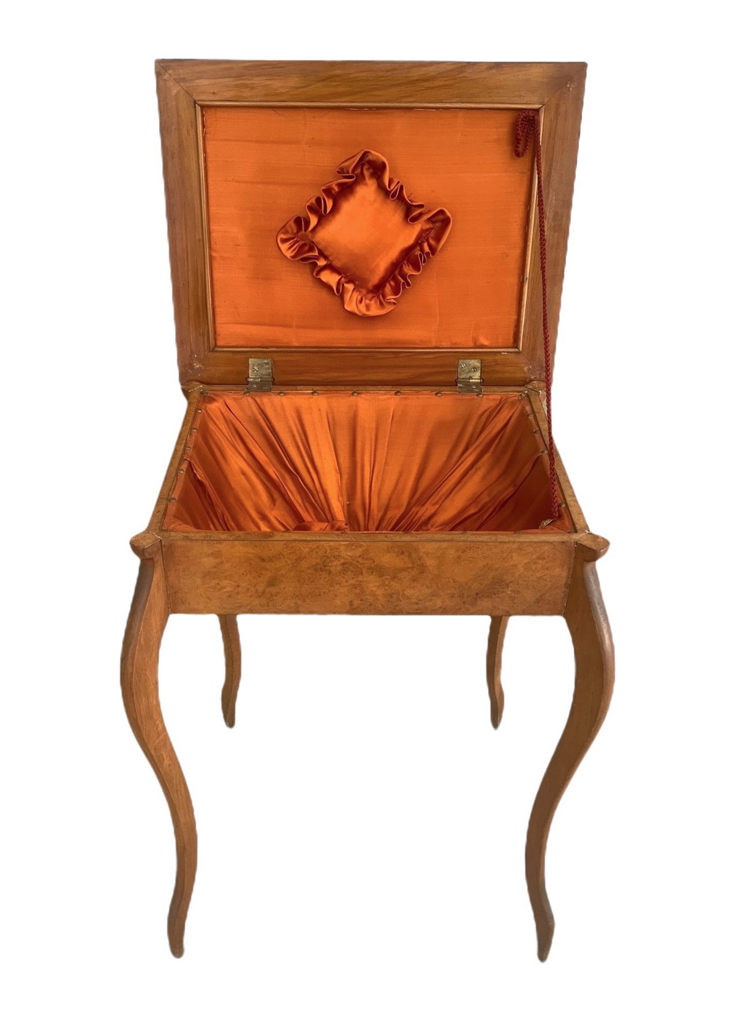 H 67x46x36 cm XIX secolo Piccolo tavolo da lavoro rettangolare con intarsio neoclassico al piano