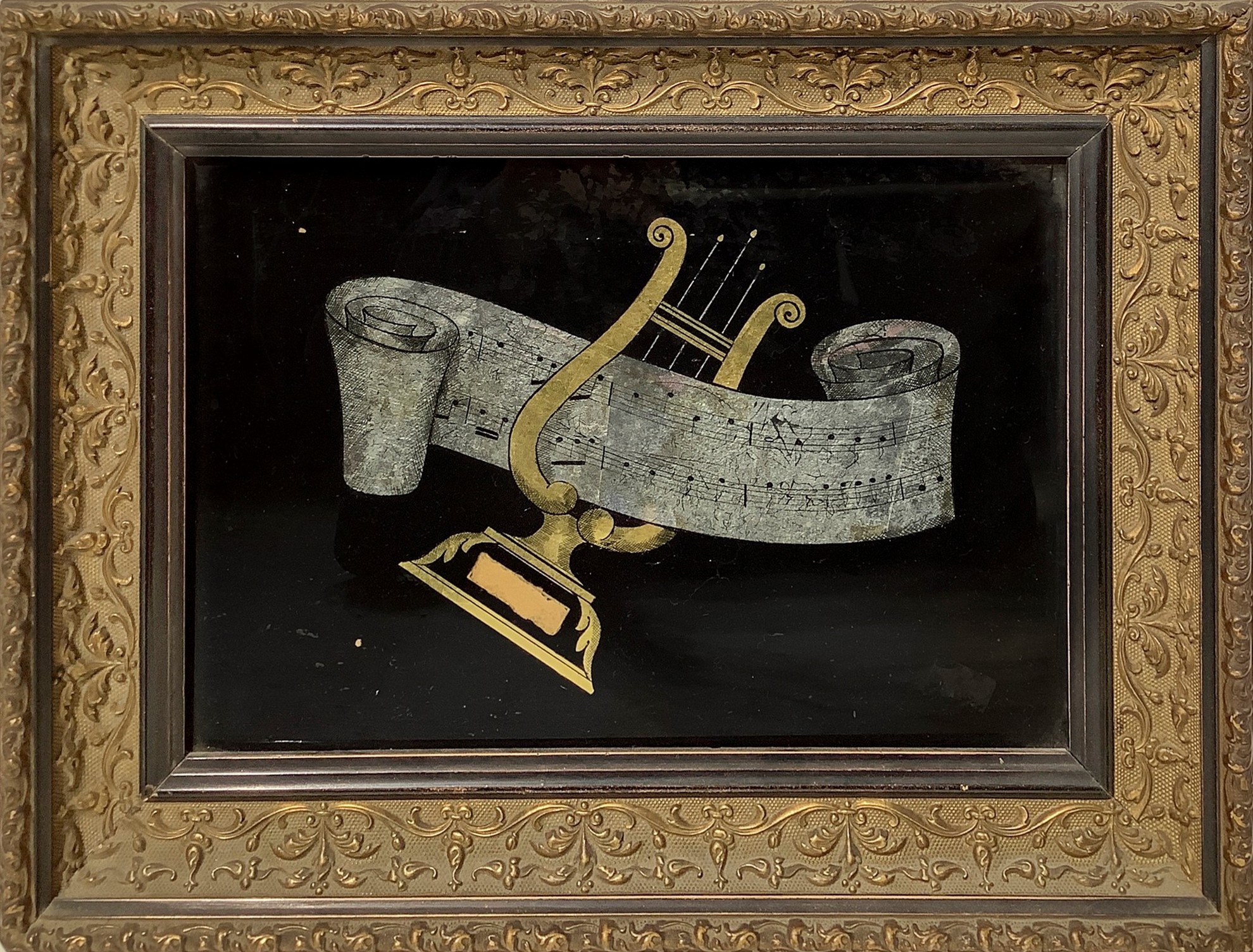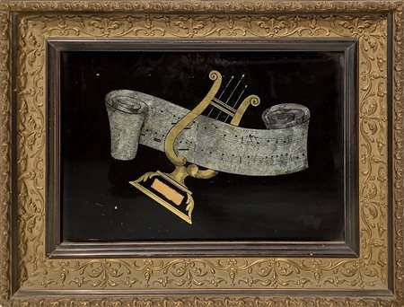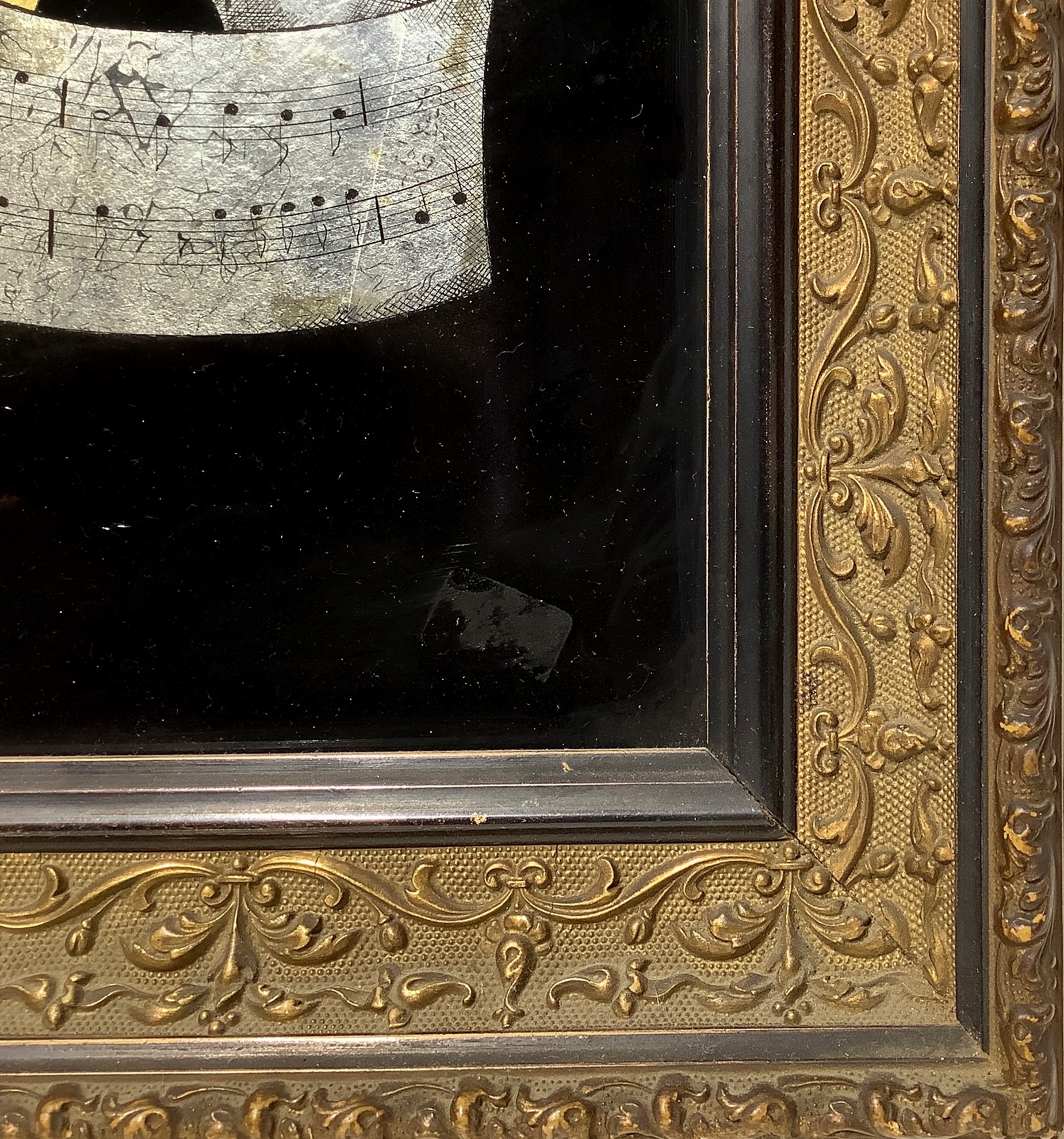 Cm 19x27 , in cornice 27x35 Fine XIX secolo Spartito musicale Papier paint su vetro