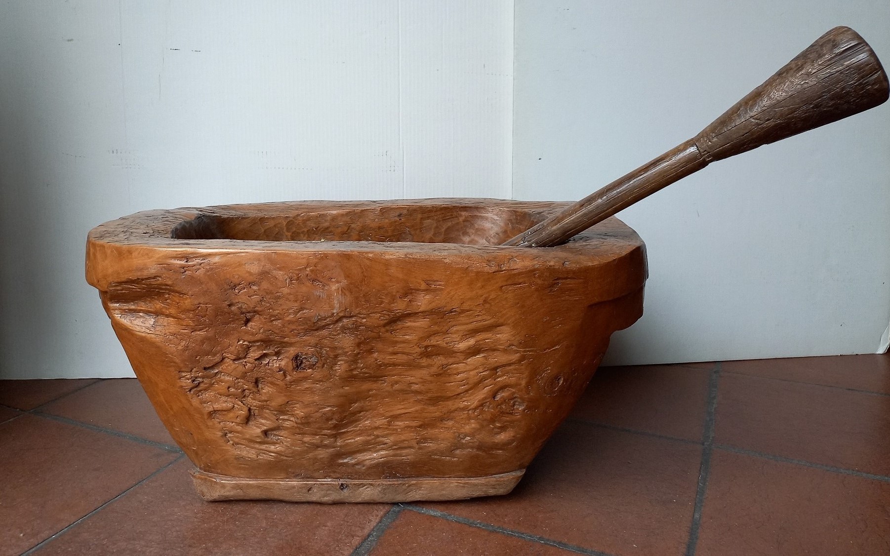 MORTAIO CON PESTELLO IN LEGNO MASSELLO CM.61X41 H.CM.31