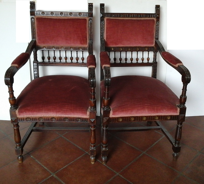 COPPIA DI POLTRONE IN LEGNO DI NOCE RIVESTITE IN VELLUTO INIZI XX SECOLO