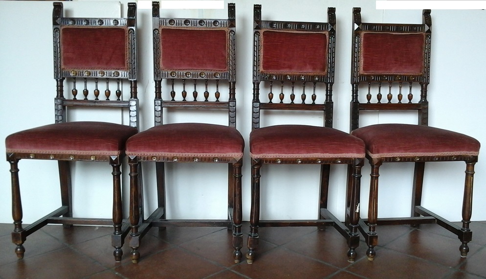 QUATTRO SEDIE IN NOCE RIVESTITE IN VELLUTO INIZI XX SECOLO