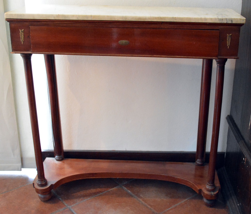 CONSOLE IN MOGANO STILE IMPERO CON PIANO IN MARMO XIX SECOLO CM.92X30 H.SCM.91