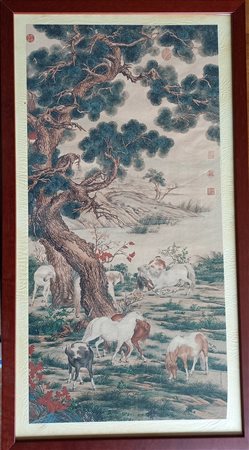PAESAGGIO ORIENTALE CON CAVALLI - STAMPA SU CARTA - INCORNICIATA CM.67X38