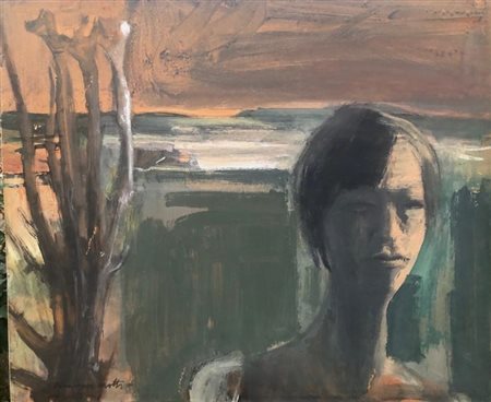GIUSEPPE MOTTI (1908-19909) - DONNA DEL FIUME TECNICA MISTA SU FAESITE CM.50X60 FIRMATO IN BASSO A SINISTRA