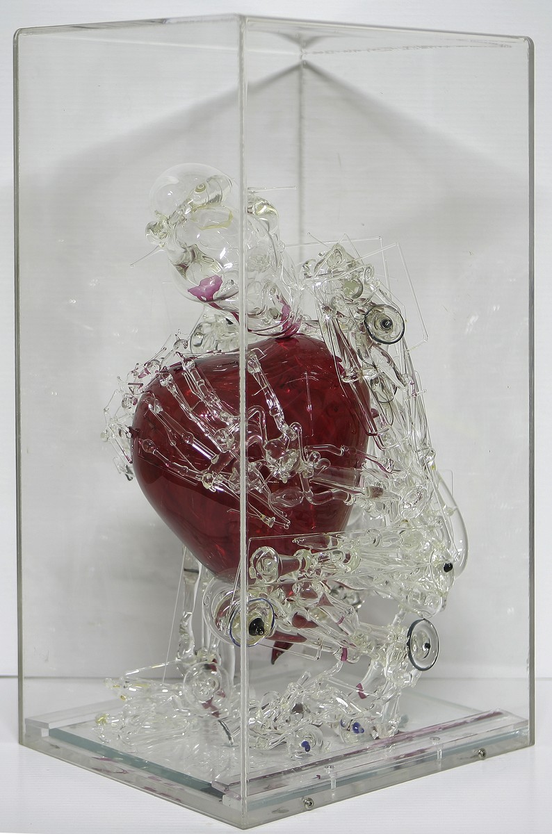 MARCHI MAHATMA (n. 1972) Manichino con cuore. 2008. Vetro soffiato. Cm 21,50 x 31,00 x 21,50. In teca di plexiglass: 63x30x30cm. In allegato all'opera catalogo a cura di Galleria Colonna Arte Moderna e Contemporanea, Mahatma: pensieri di vetro, 2008, sul quale è pubblicata l'oper a a pag.49.