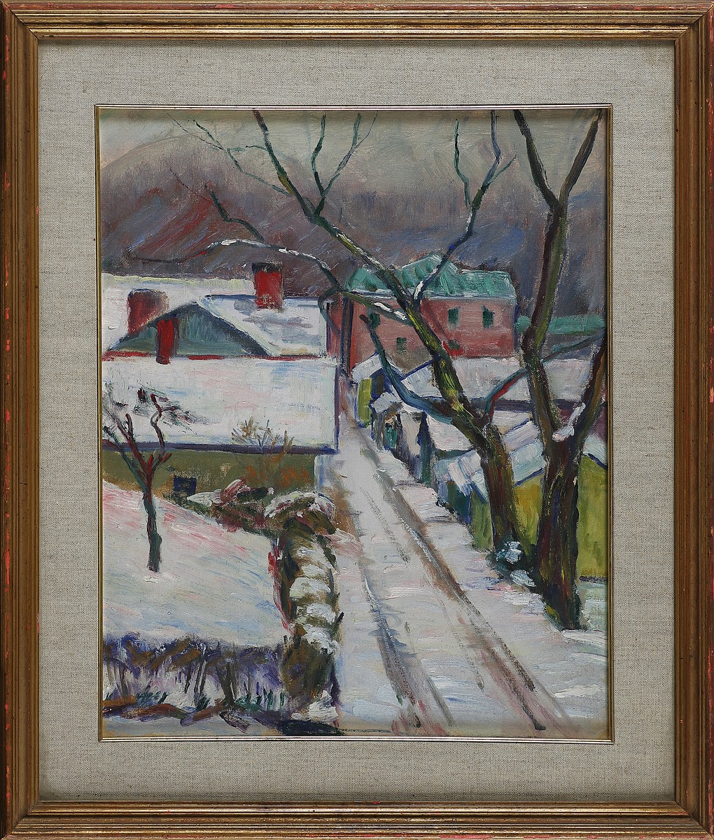 ANONIMO Case d'inverno. Olio su cartone pressato. Cm 40,00 x 50,00. . Cornice presente