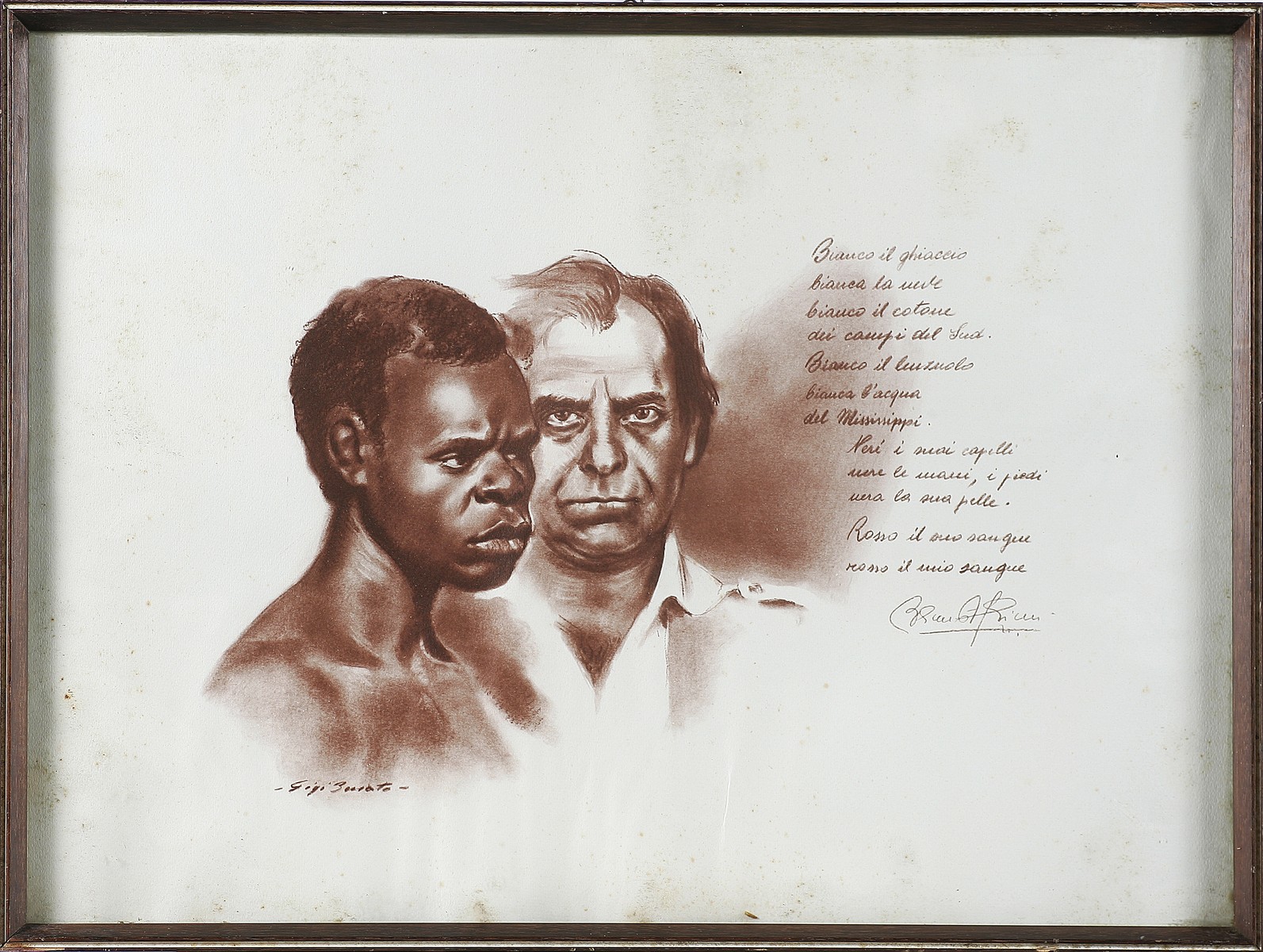 BUSATO GIGI (n. 1932) Ritratti. Sanguigna su carta . Cm 57,00 x 40,00. Firma in basso a sinistra. Cornice presente