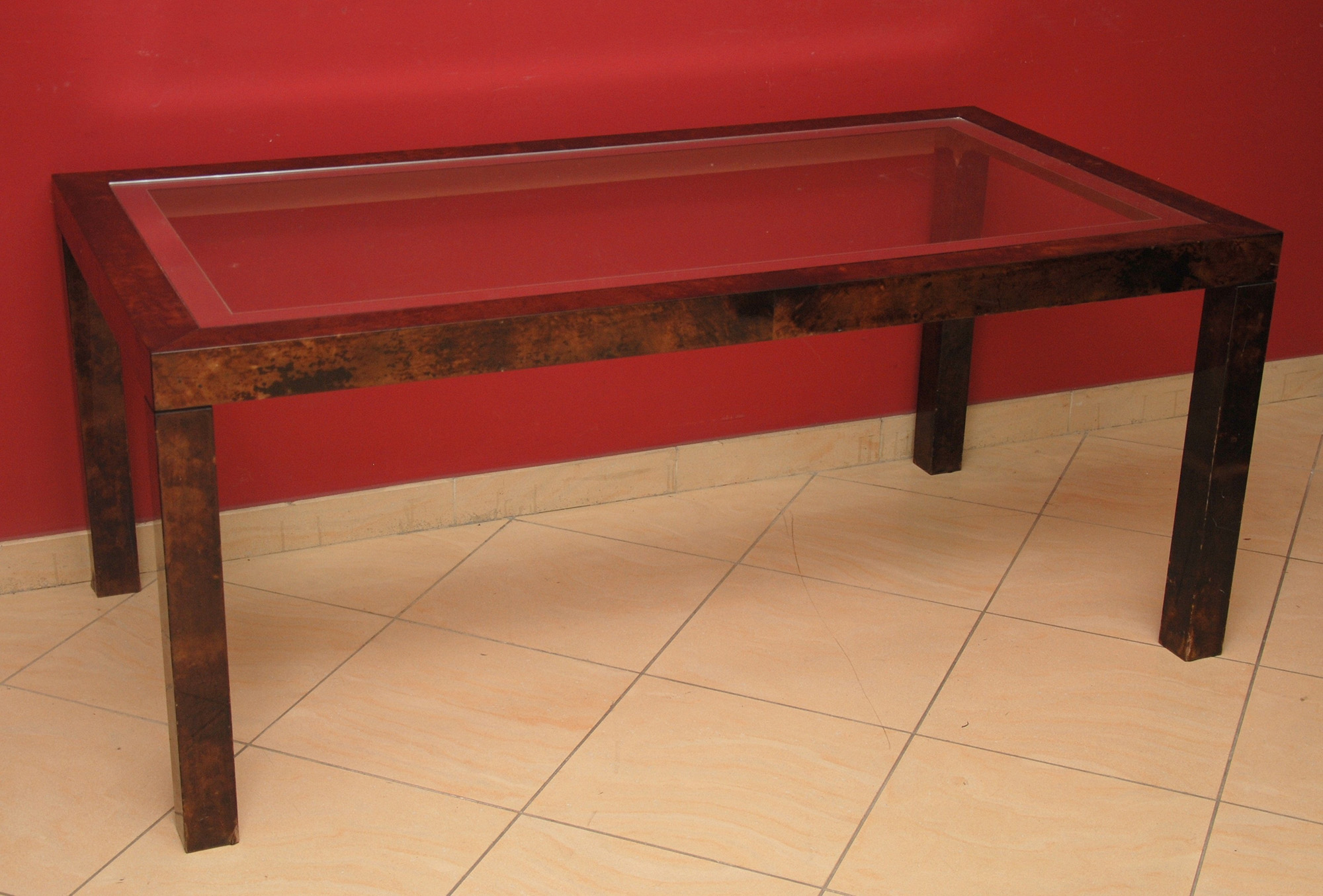 Aldo Tura (1909 - 1963) tavolo da pranzo con piano in cristallo
