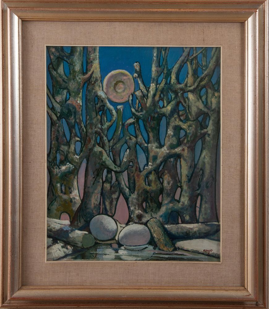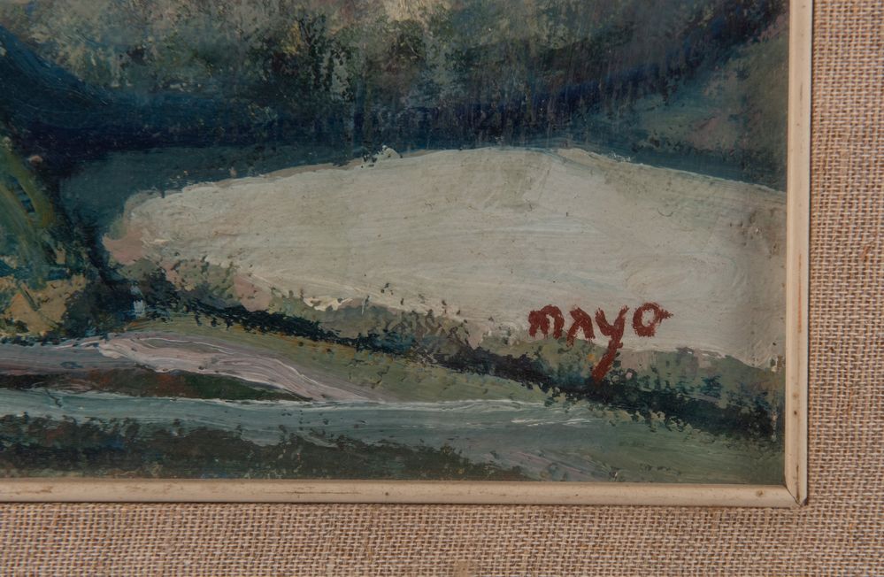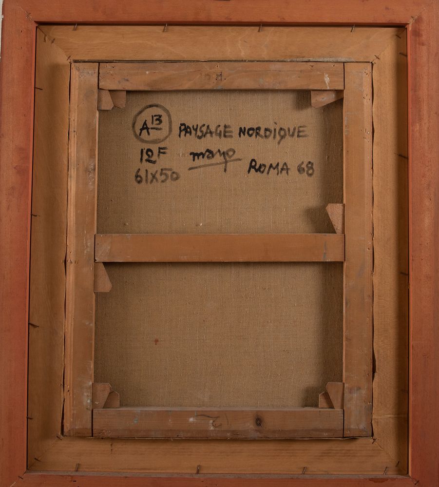 ANTOINE MAYO (Port Said 1905 - Seine-Port 1990) "Paysage nordique", 1968. Olio su tela. Cm 61x50. Opera firmata in basso a destra Mayo. Al retro opera firmata e intitolata Paesage Nordique Mayo. Al retro reca datazione e luogo Roma 68.