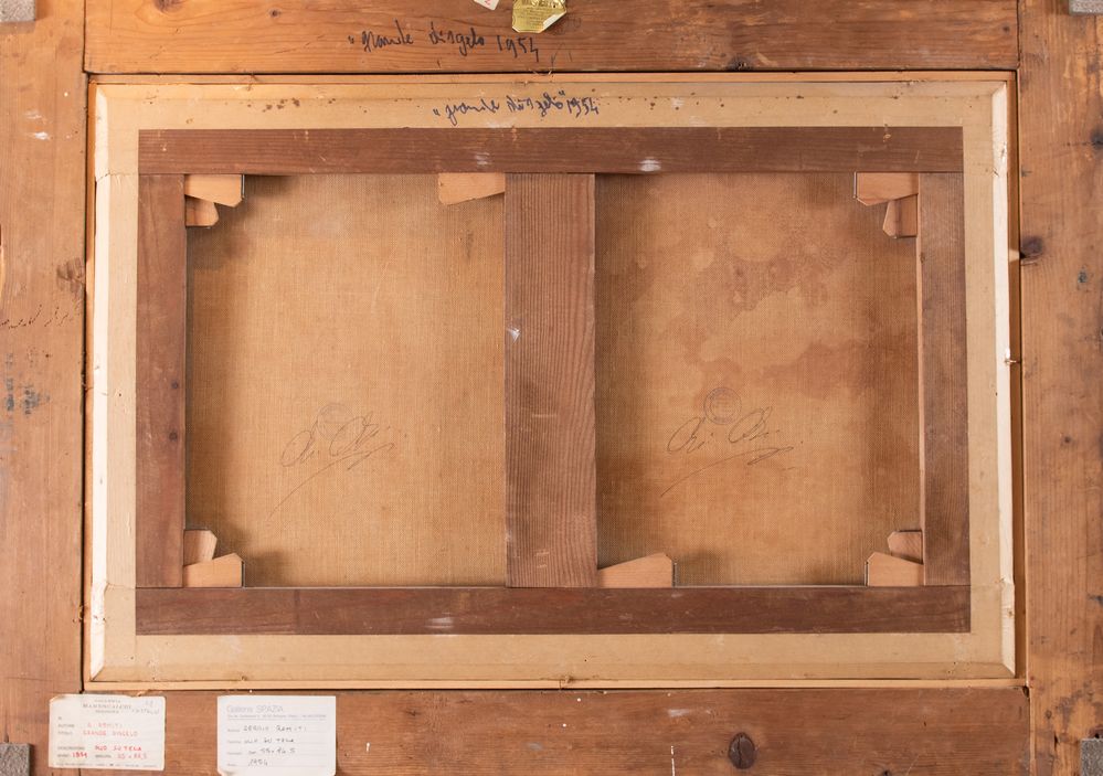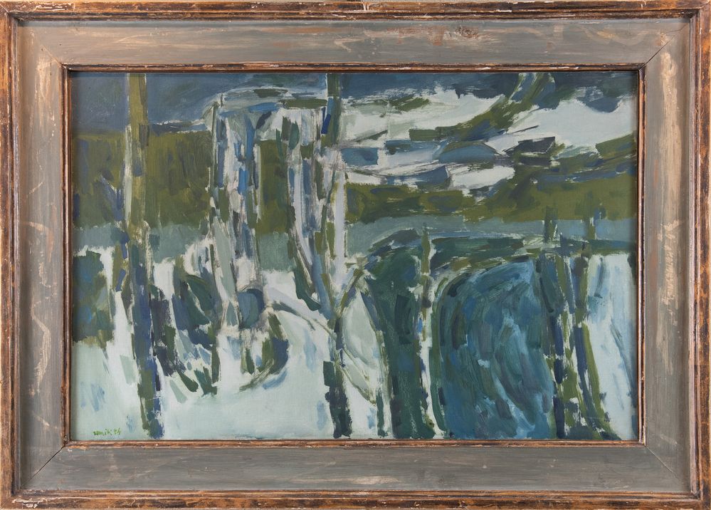 SERGIO ROMITI (Bologna 1928 - 2000) "Il grande disgelo", 1954. Olio su tela. Cm 55x85,5. Opera firmata e datata in basso a sinistra Romiti 54. Al retro reca etichetta della Galleria d'Arte Mario Marescalchi con sigla di Mario Marescalchi. Al retro reca etichetta della Galleria d'arte Spazia, Bologna. Pubblicazione: catalogo generale di Sergio Romiti, vol. I.
