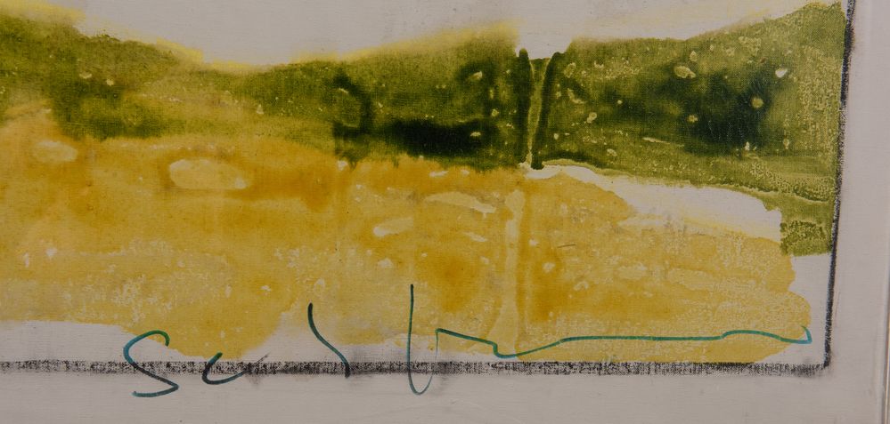 MARIO SCHIFANO (Homs 1934 - Roma 1998) "Paesaggio anemico", prima metà degli anni '70. Smalti su tela. Cm 75x96. Opera firmata in basso a destra Schifano. Al retro reca firme non decifrate. Opera accompagnata da autentica della Fondazione Mario Schifano in data 15 Novembre 2001, con numero d'archivio PM70/390.