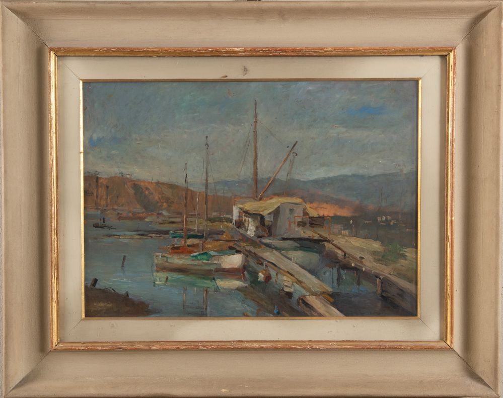 NORMA MASCELLANI (Bologna 1909 - 2009) "Marina". Anni '50 del XX secolo. Olio su tavola. Cm 42x60. Opera firmata in basso a destra Mascellani.