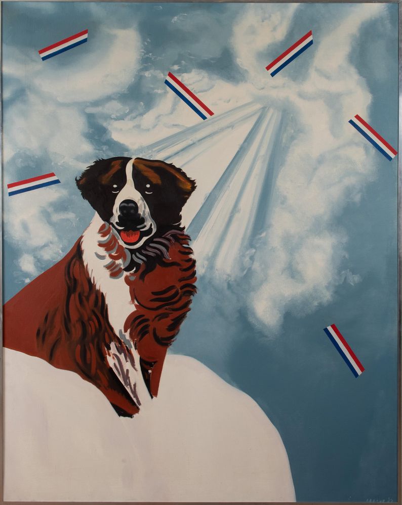 EDUARDO ARROYO (Madrid 1937 - 2018) "Linda de chamonix", 1972. Acrilico su tela. Cm 145x115. Opera firmata e datata in basso a destra Arroyo 72. Al retro reca etichetta della Galleria La Mela Verde, Torino.
