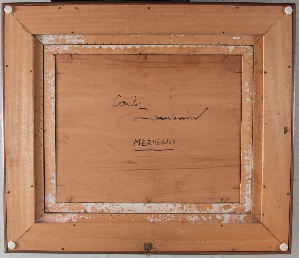 CARLO DOMENICI (Livorno 1897 - Portoferraio 1981) "Meriggio". Olio su tavola. Cm 50,5x41. Opera firmata in basso a destra C. Domenici. Opera firmata al retro e intitolata Carlo Domenici, Meriggio.