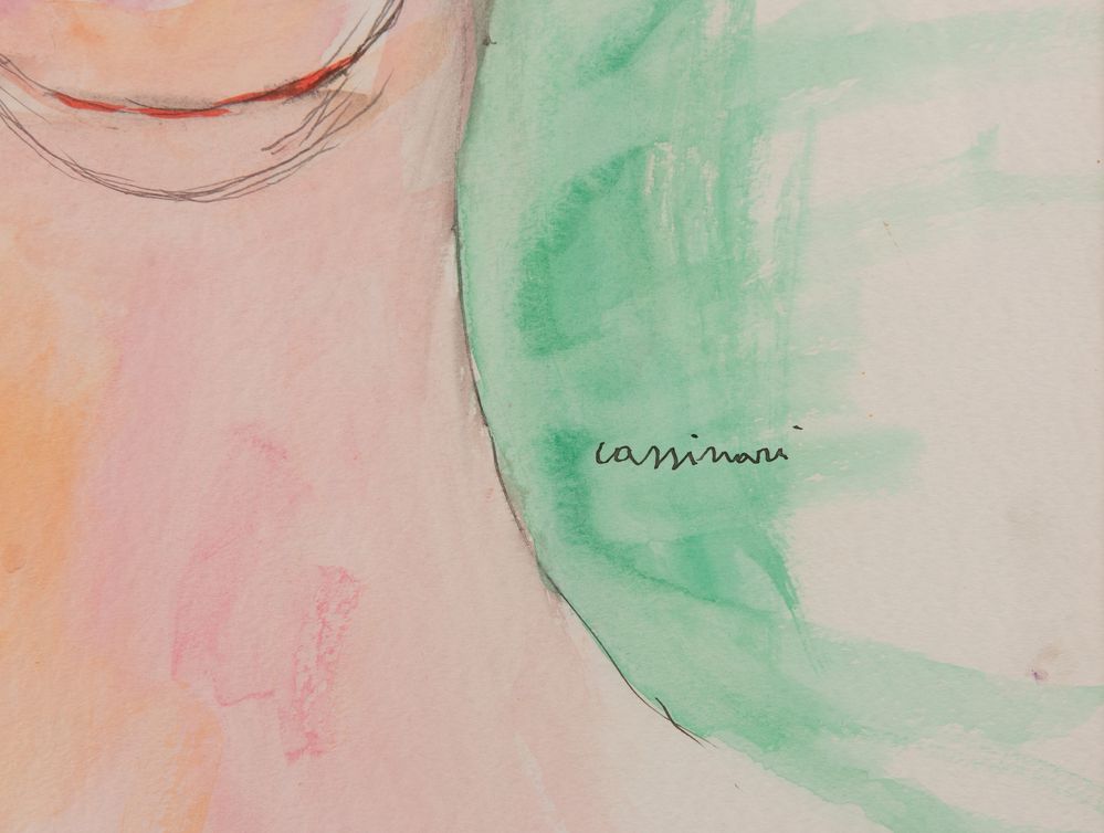 BRUNO CASSINARI (Piacenza 1912 - Milano 1992) "Ritratto di donna". Acquerello su carta. Cm 70x50. Opera firmata in basso a destra Cassinari. Provenienza: importante collezione privata, Bologna. Opera accompagnata da autentica su fotografia a firma del maestro con timbri della Galleria d'arte Severi, Bologna, con firma Daniela Severi,in data 29.4.1967. Opera pubblicata nel Catalogo generale dell'Opera di Bruno Cassinari con il n° 2859/C483. Opera archiviata presso l'Archivio Bruno Cassinari in data 1999, con numero d'archivio 2859/C483, come da documentazione su fotografia.