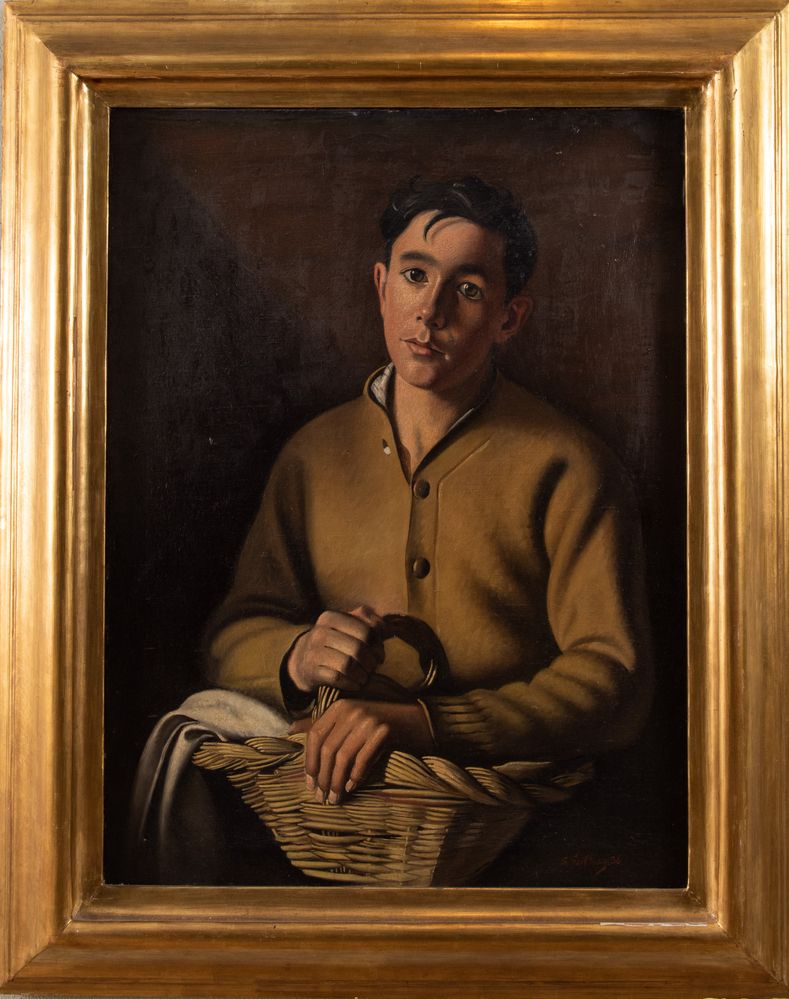 GREGORIO SCILTIAN (Nakhichevan-na-Donu 1900 - Roma 1985) "Ragazzo con cesta", 1936. Olio su tela. Cm 80x60. Opera firmata e datata in basso a destra G. Sciltian '36. Opera rectoversa. Opera pubblicata nel catalogo generale dell'artista a piena pagina. Provenienza: importante collezione privata, Milano. Provenienza: importante collezione privata, Bologna. Opera acquistata direttamente dall'artista dall'attuale proprietà.