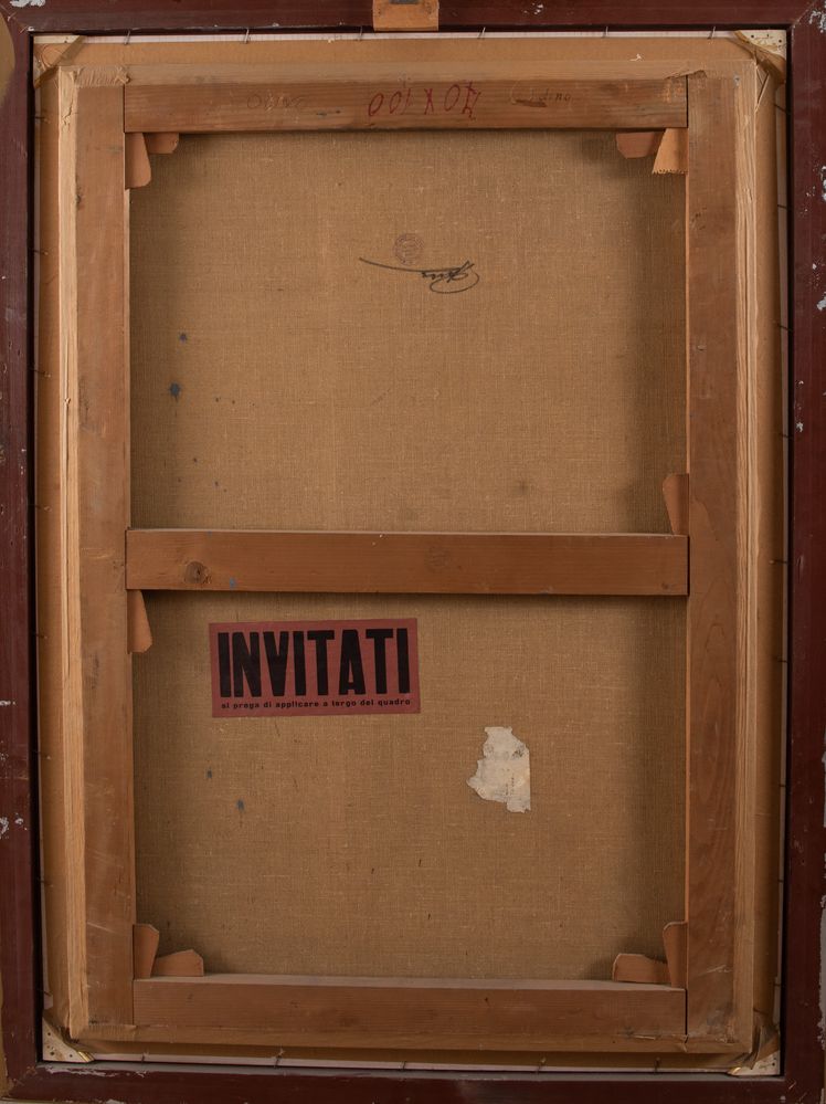 RICCARDO TOMMASI FERRONI (Pietrasanta 1934 - Camaiore 2000) "Senza titolo". Olio su tela. Cm 100x70. Opera firmata in basso a destra Riccardo Tommasi Ferroni. Al retro reca timbro di galleria d'arte indecifrato. Opera acquistata presso il Centro d'Arte La Barcaccia. Provenienza: importante collezione privata, Bologna.