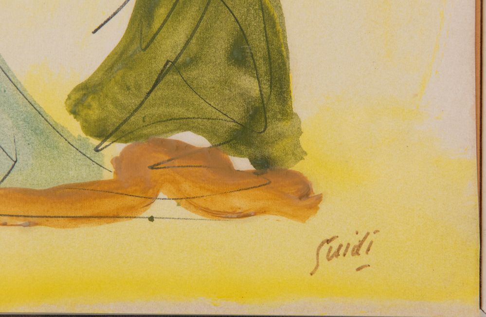 VIRGILIO GUIDI (Roma 1891 - Venezia 1984) "Senza titolo". Acquerello su carta applicata a cartone. Cm 51,5x34,5. Opera firmata in basso a destra Guidi. Opera accompagnata da autentica su fotografia a firma del maestro.