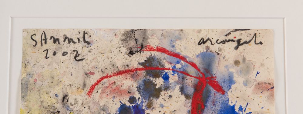 ARCANGELO (Avellino 1956) "Sanniti", 202. Tecnica mista su carta. Cm 32x24. Opera firmata in alto a destra Arcangelo. Opera intitolata e datata in alto a sinistra Sanniti 2002. Provenienza: Art for children and mother, 2015. Bibliografia: catalogo, pag. 28, n. 49.