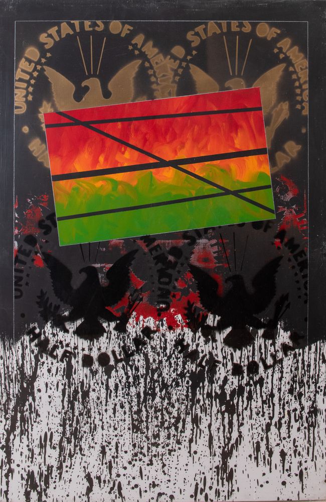 FRANCO ANGELI (Roma 1935 - 1988) "Frammenti". Smalto su tela. Cm 120x80. Al retro opera firmata e intitolata Franco Angeli Frammenti. Opera in fase di archiviazione presso l'Archivio Franco Angeli, Roma.