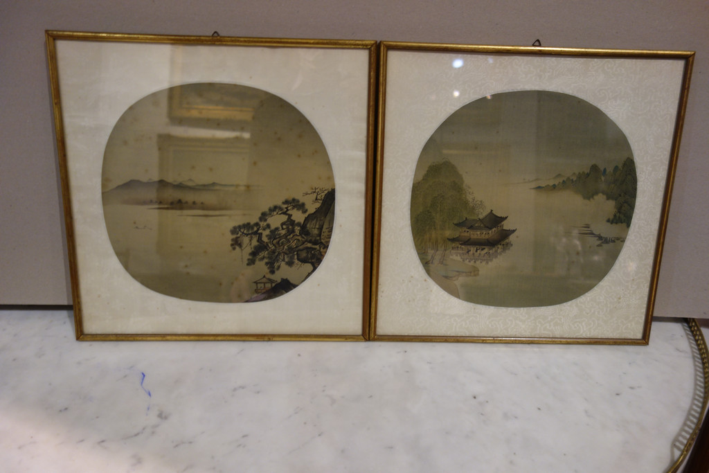 Due disegni per ventaglio raffiguranti paesaggi orientali inizi sec.XX