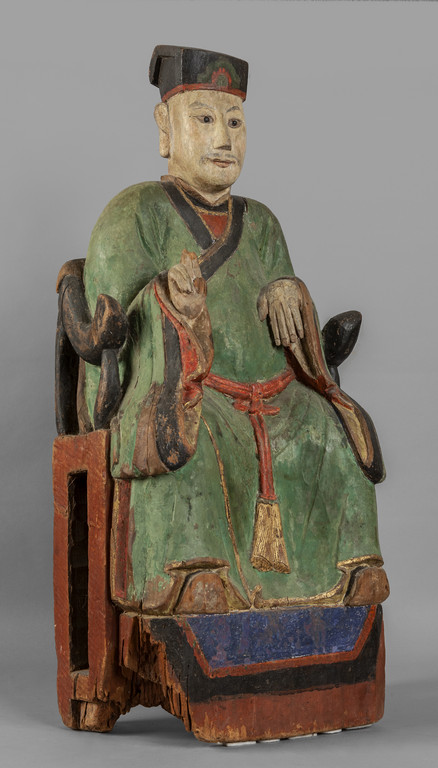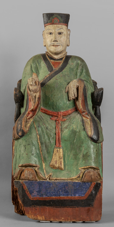 Dignitario seduto scultura in legno intagliato e policromato Cina sec.XIX