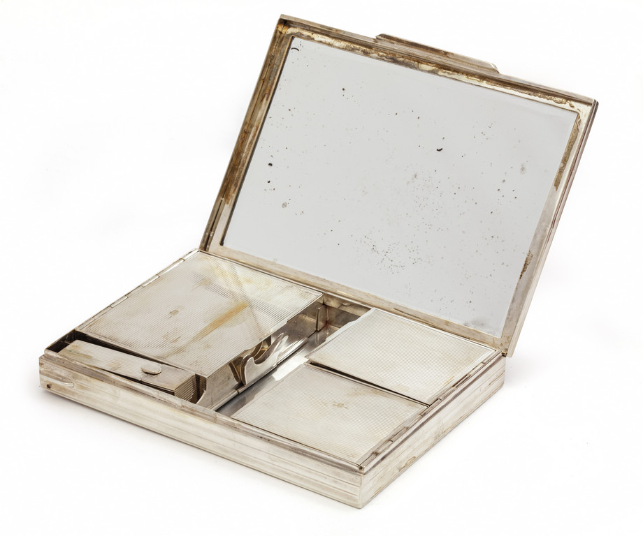 MISSAGLIA - Venezia necessaire porta trucco in argento titolo 800 con specchio due porta cipria e porta rossetto pettinino mancante