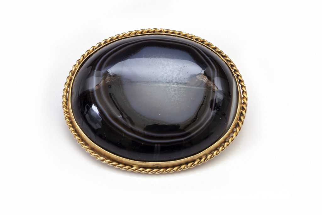Spilla in oro giallo con montata grossa agata. Peso 21 27 gr