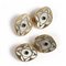 Gemelli in oro giallo e madreperla che per contrasto formano un arabesco nella parte centrale sono incastonati quattro piccoli zaffiri cabochon