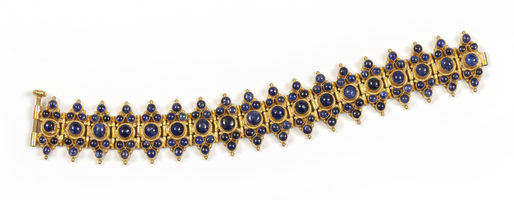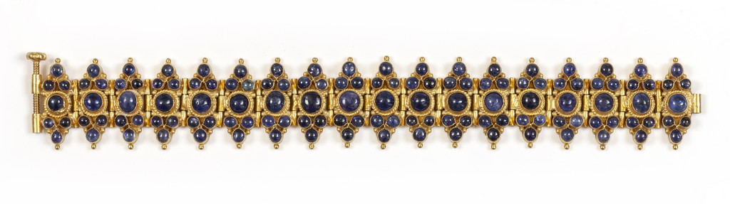 Bracciale in oro giallo con incastonati zaffiri taglio cabochon chiusura a vite. India fine sec.XIX