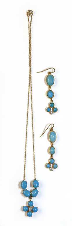 Lotto composto da collana e orecchini in oro giallo con turchesi e cubik zirconia.