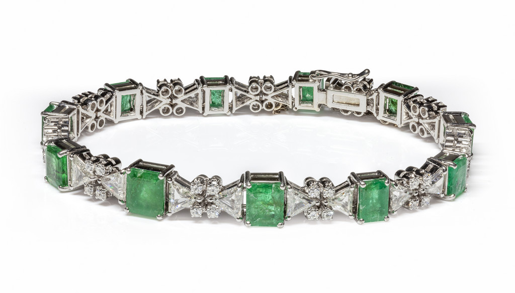 Bracciale in oro bianco con diamante di vario taglio triangolari e rotondi e smeraldi diamanti ct stimati 5 smeraldi ct.stimati 11