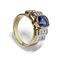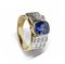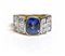 Anello in oro giallo e bianco con diamanti laterali taglio a carrè e zaffiro centrale taglio a cuscino di stimati 4 60 ct