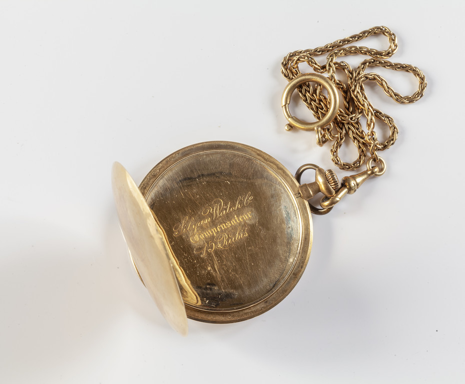 SILYAN WATCH & Co Orologio da tasca con doppia cassa in oro rosso e catena a corredo mancante della sfera dei secondi a ore 6 Indici arabi sfere Breguet.