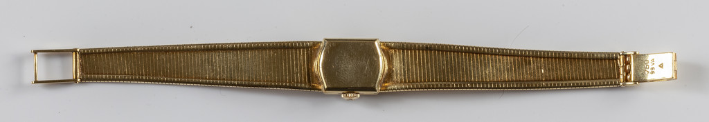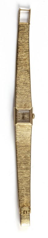 OMEGA Orologio da donna in oro giallo bracciale 'corteccia' quadrante dorato indici a bastone.Movimento meccanico a carica manuale da revisionare.