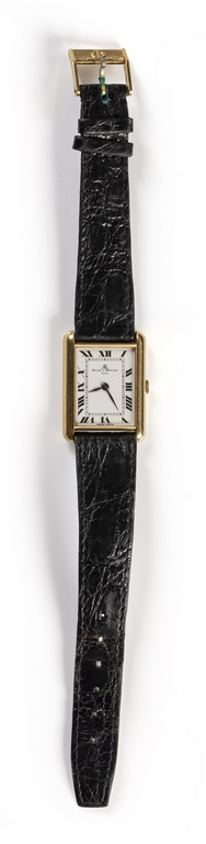 BAUME & MERCIER Orologio Lady in oro giallo quadrante bianco con numeri romani cinturino in pelle nera e fibbia originale