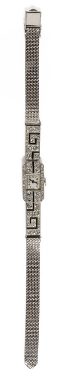 Orologio Decò con parte centrale in platino sulla quale sono incastonati diamanti naturali taglio brillante per tot ct 1 50 circa cinturino in metallo