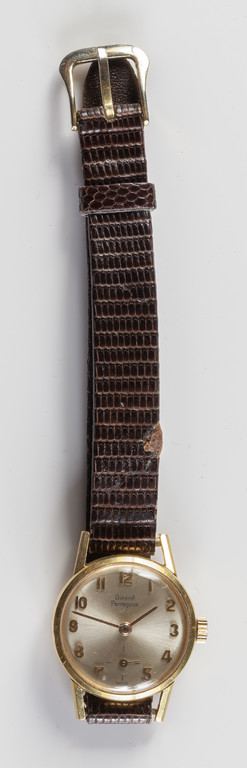 GIRARD PERREGAUX Orologio da polso lady movimento meccanico a carica manuale. Cassa in oro giallo solo tempo bracciale in pelle fibbia mancante.