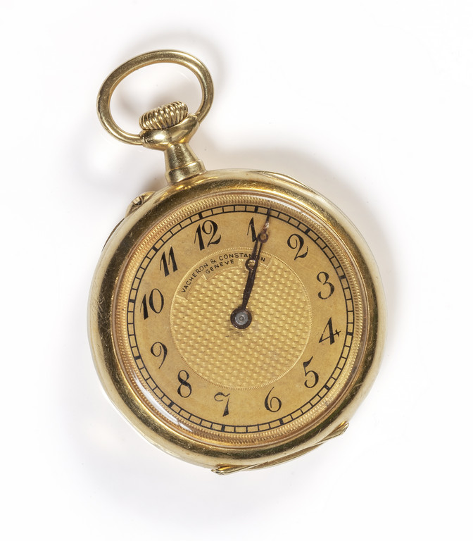 VACHERON CONSTANTIN orologio da tasca in oro rosso quadrante oro con lavorazione al centro guillioché sfere Breguet indici arabi minuteria chiusa.