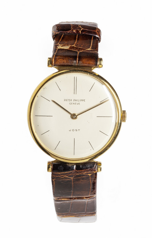 PATEK PHILIPPE Calatrava ref 2592 orologio da polso in oro ultrapiatto movimento meccanico a carica manuale Indici a linee sfere a bastoni quadrante indelebile firmato JOST. Cinturino in pelle fibbia in oro e scatola originale.