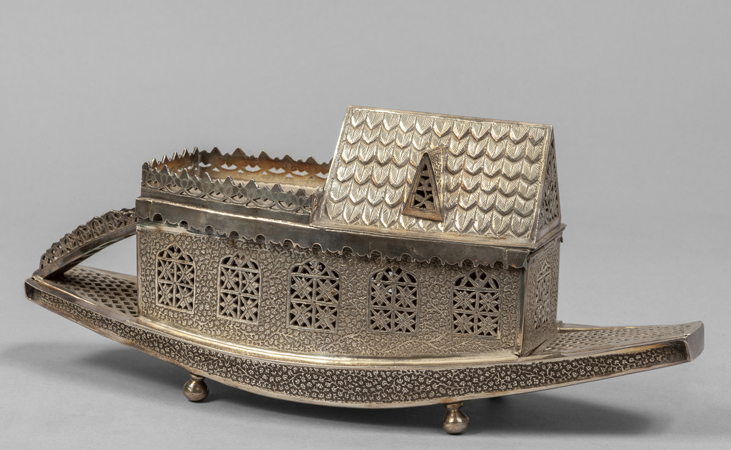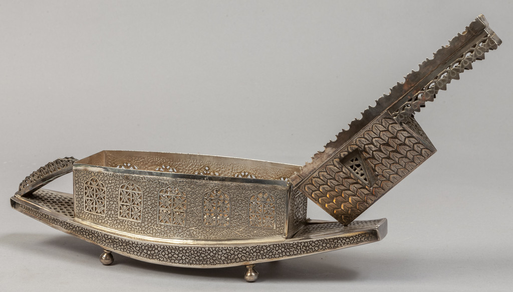 Modello di casa sull'acqua in argento